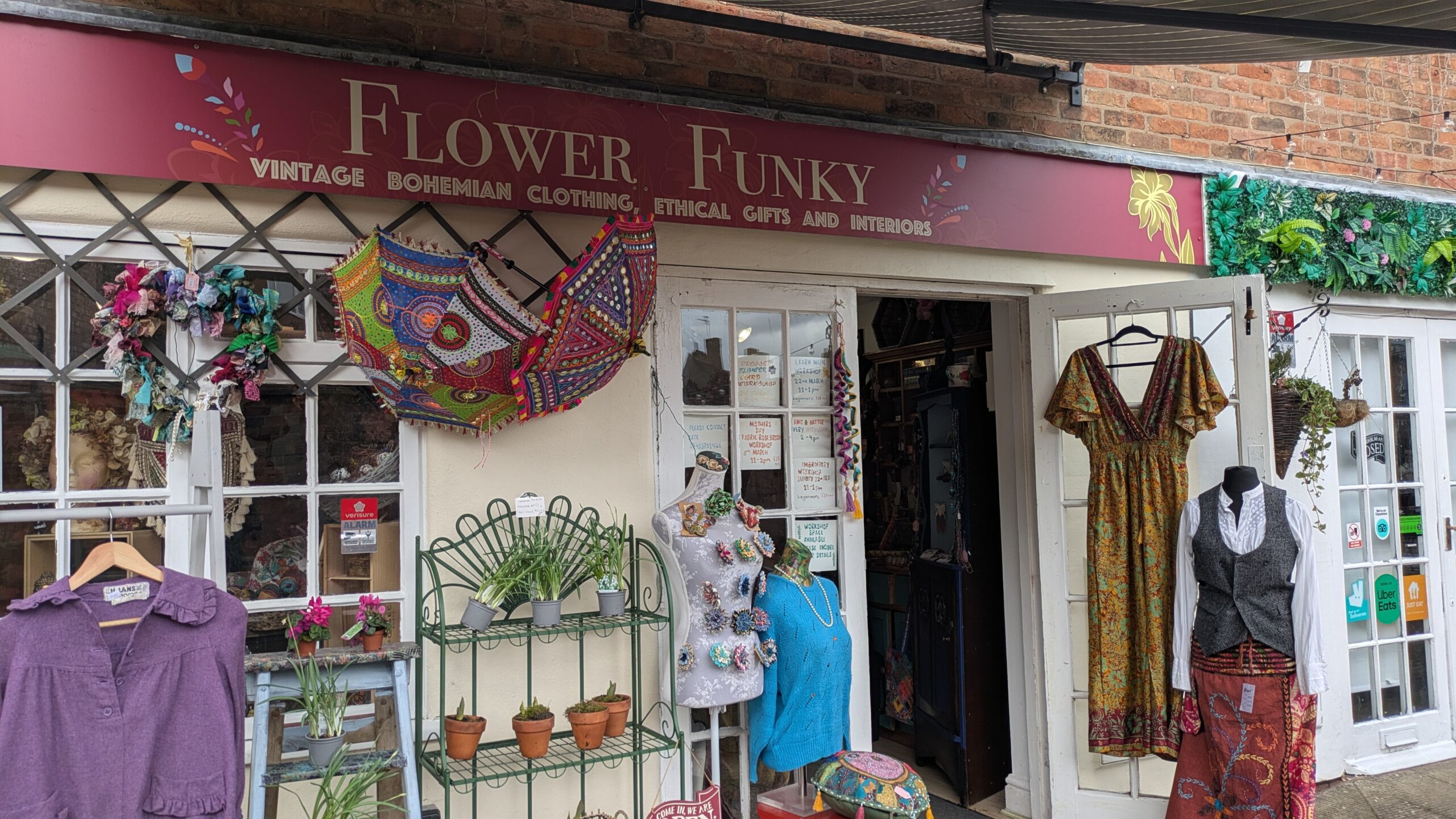 Flower Funky is a small shop selling beautiful vintage and bohemian clothing plus handcrafted gifts made in store , we also run craft workshops at the shop
